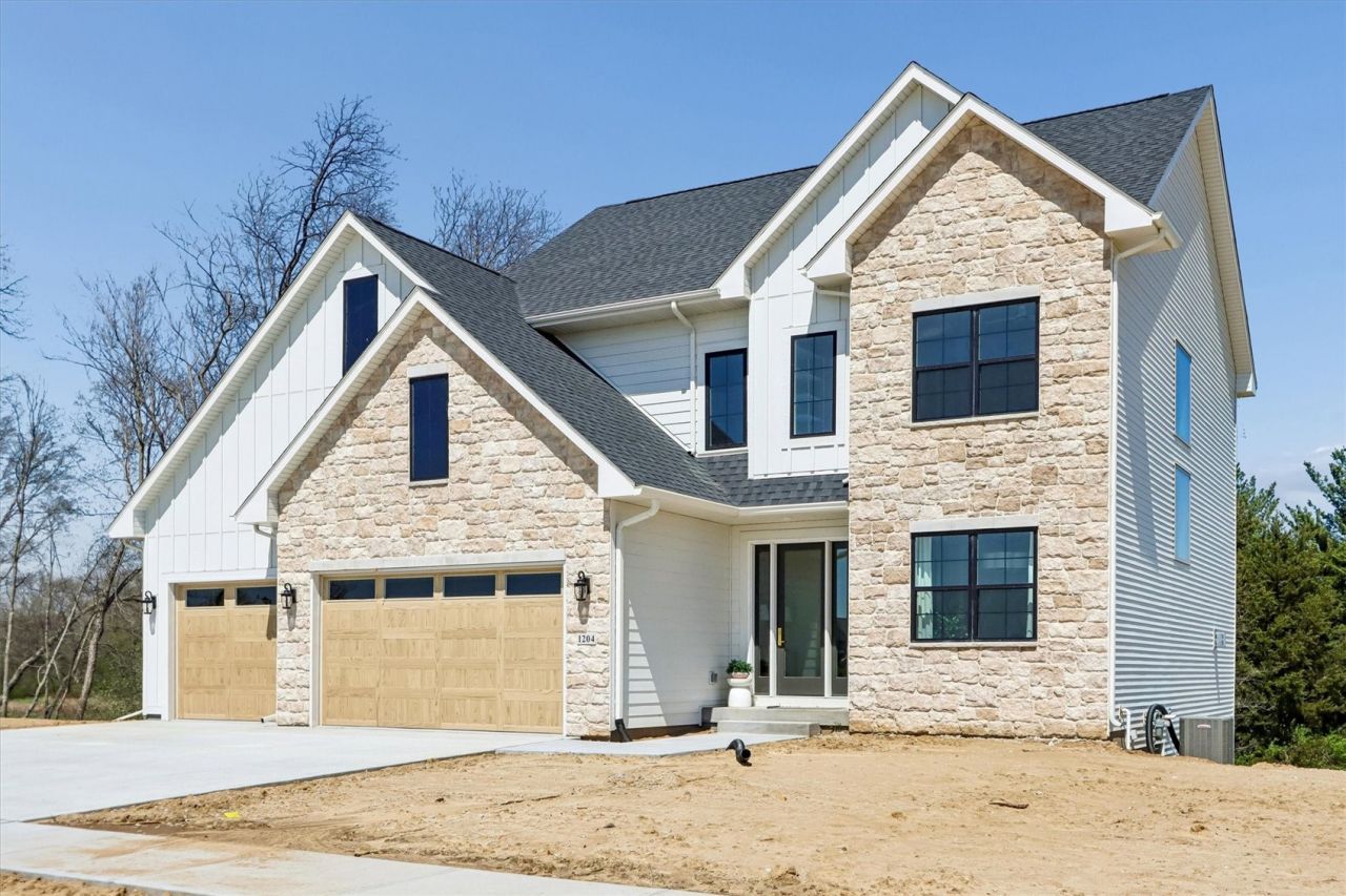 New Watts Group Construction home in Trail Ridge Estates. Five bedrooms, three and a half bath 2-story home. Great room fireplace w/floor to ceiling stone surround. Dining area walks out to 4-Seasons room and open deck. Primary suite, 2 additional bedrooms, and laundry room are on the upper level. LL has the additional bedroom, bathroom, Rec. Room and access to patio. This is the Homestead plan. ***FLOORPLANS ARE CONCEPT ONLY. ACTUAL BUILD WILL VARY.*** Property Tax is per Johnson County Treasurer at time of listing, buyer to verify property taxes.