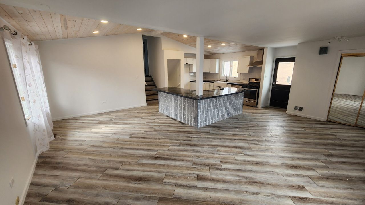 This four-bedroom, two-bath split-level home has been completed remodeled including all new flooring, new interior and exterior paint, new kitchen cabinets and countertops, new wrapping island w/breakfast bar, new stainless steel oven/range, new bathrooms, new roof, new hot water heater. Main level features living room, dining area and spacious kitchen with breakfast island. Upstairs offers 3 bedrooms and a full bath. Lower level includes a family room, 4th bedroom, 3/4 bathroom, and laundry/utility room with rear exit. This project was about 95% complete and the contractor moved out of state. Get additional savings with home as is before we find a new contractor. Property is being sold AS IS.