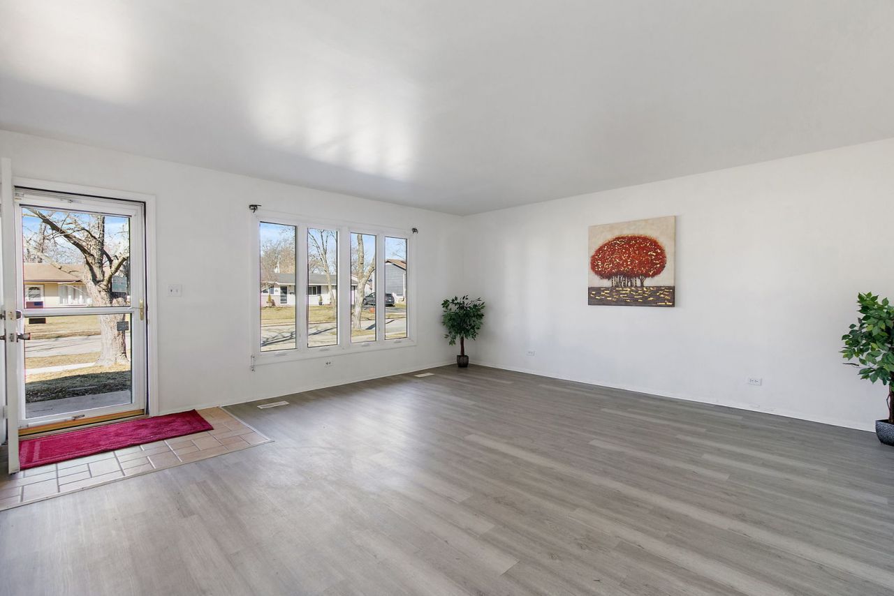 Spacious and bright ranch home featuring 4 bedrooms and 2 full baths, ready for its new owner! This well-maintained home offers numerous updates including fresh paint, new carpeting, new vinyl flooring, a new roof, and water heater; all completed in 2025. The kitchen features stainless steel appliances and white cabinetry with crown molding, offering both style and functionality. Enjoy plenty of space to relax or entertain with a large living room and an even larger family room, providing flexible living areas for everyday comfort. The family room is filled with natural light and features a cozy brick fireplace along with two sets of sliding glass doors that lead to the backyard, creating a bright and inviting space. Fireplace has gas line and owner has equipment to bring gas to fully functional gas start if buyer would like seller to leave with home. The primary bedroom offers two separate closets and a private full bathroom for added convenience. The second full bathroom includes a tiled shower stall with a built-in seat and shelf. Additional storage is found throughout the home with multiple extra closets. Step outside to enjoy the backyard patio surrounded by a privacy fence, perfect for relaxing or entertaining. Located in the highly rated Schaumburg School District 54/211, and conveniently close to shopping, dining, and everyday amenities. Welcome home!